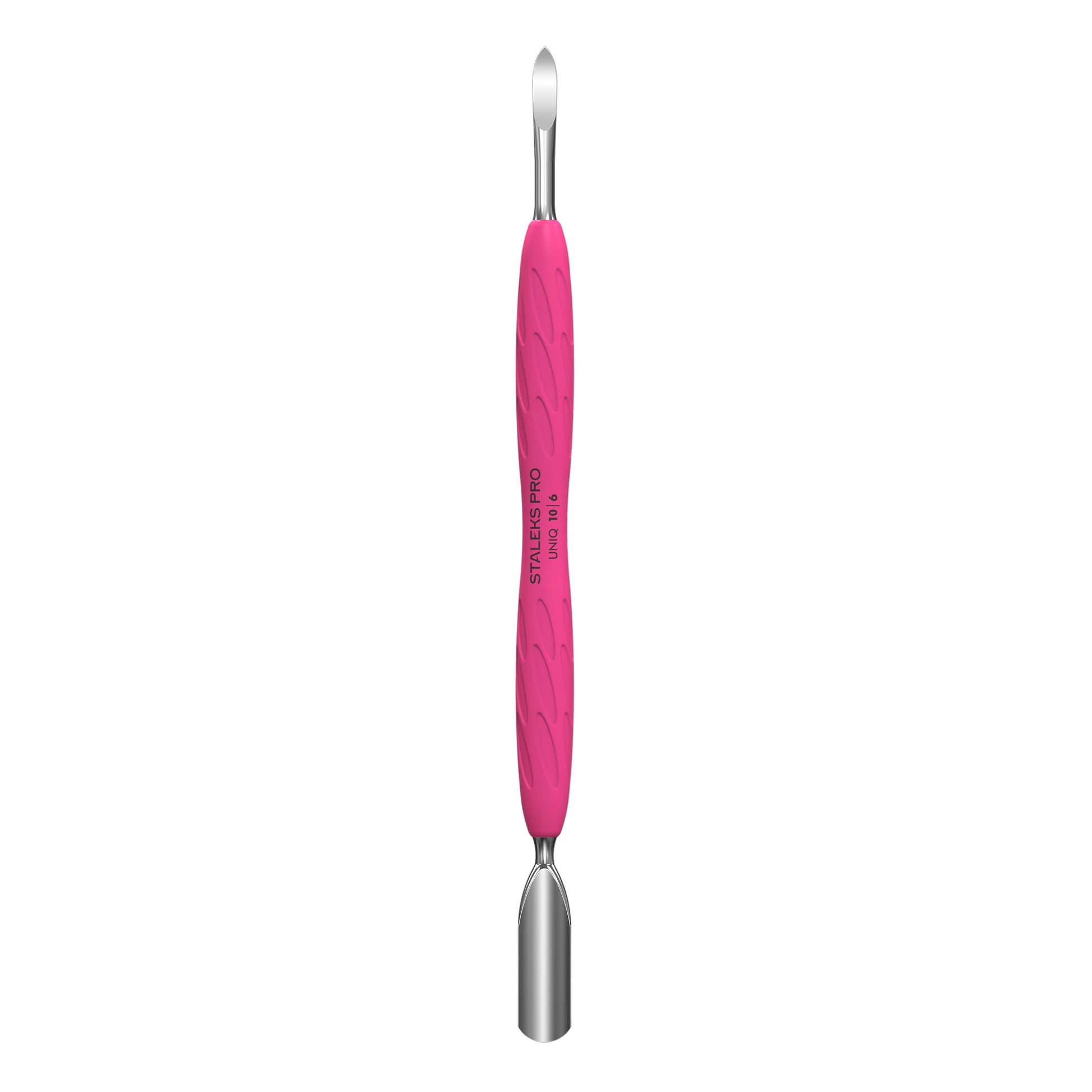Maniküre-Spatel STALEKS PRO Gummy UNIQ 10 Type 6 – Profi-Schieber und Spitze aus Edelstahl mit Silikongriff