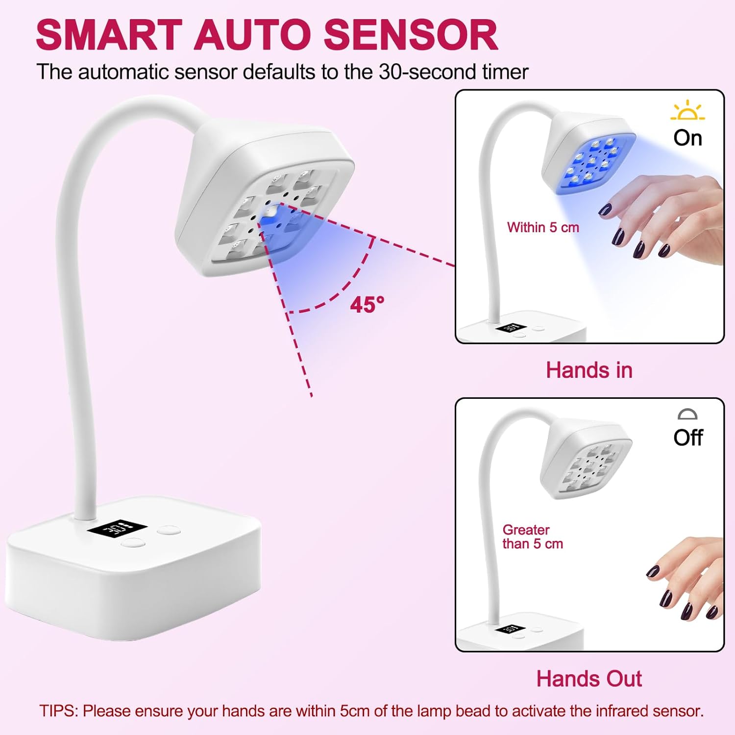 CGBE Мини UV-лампа для ногтей 27 Вт | Портативный LED + UV сушитель для гель-лака с авто-сенсором и 2 таймерами