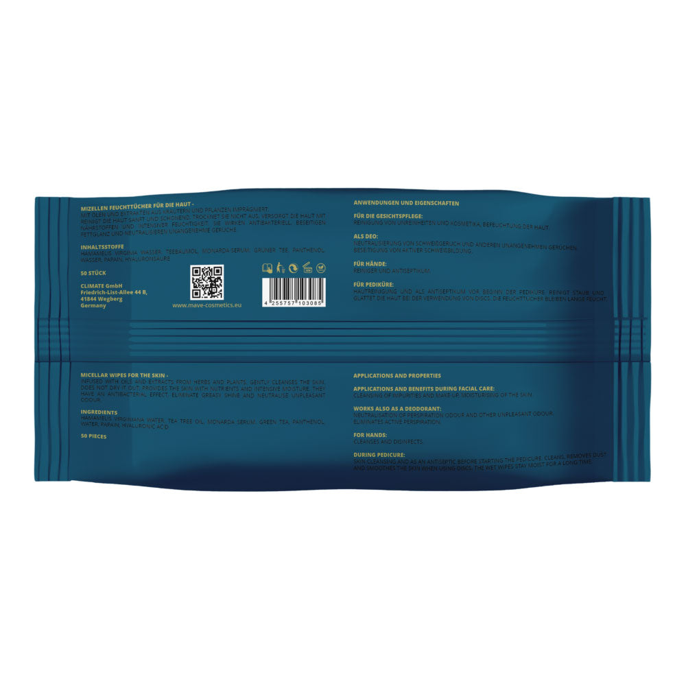 MAVE – Мицеллярные салфетки для кожи (50 шт.) — готовые к применению мягкие салфетки для лица, рук и тела. Объединяют очистку и уход в одном и подходят для всех типов кожи, включая чувствительную.